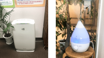 当サロンでは、空気清浄機で店内の空気を清潔に保ち、電子機能水を加湿器で噴霧し空気中の菌を殺菌し、安心してご利用いただけるよう努めております。